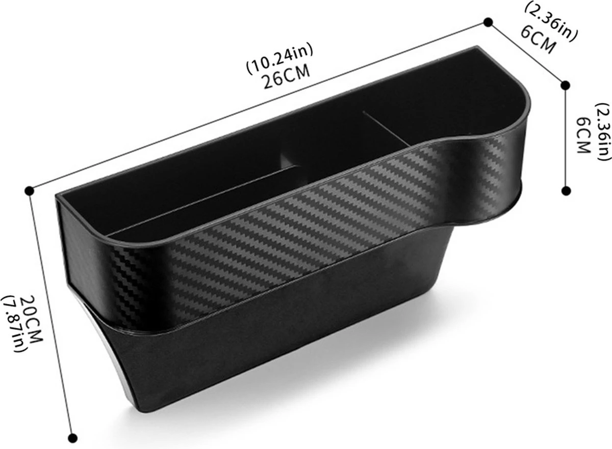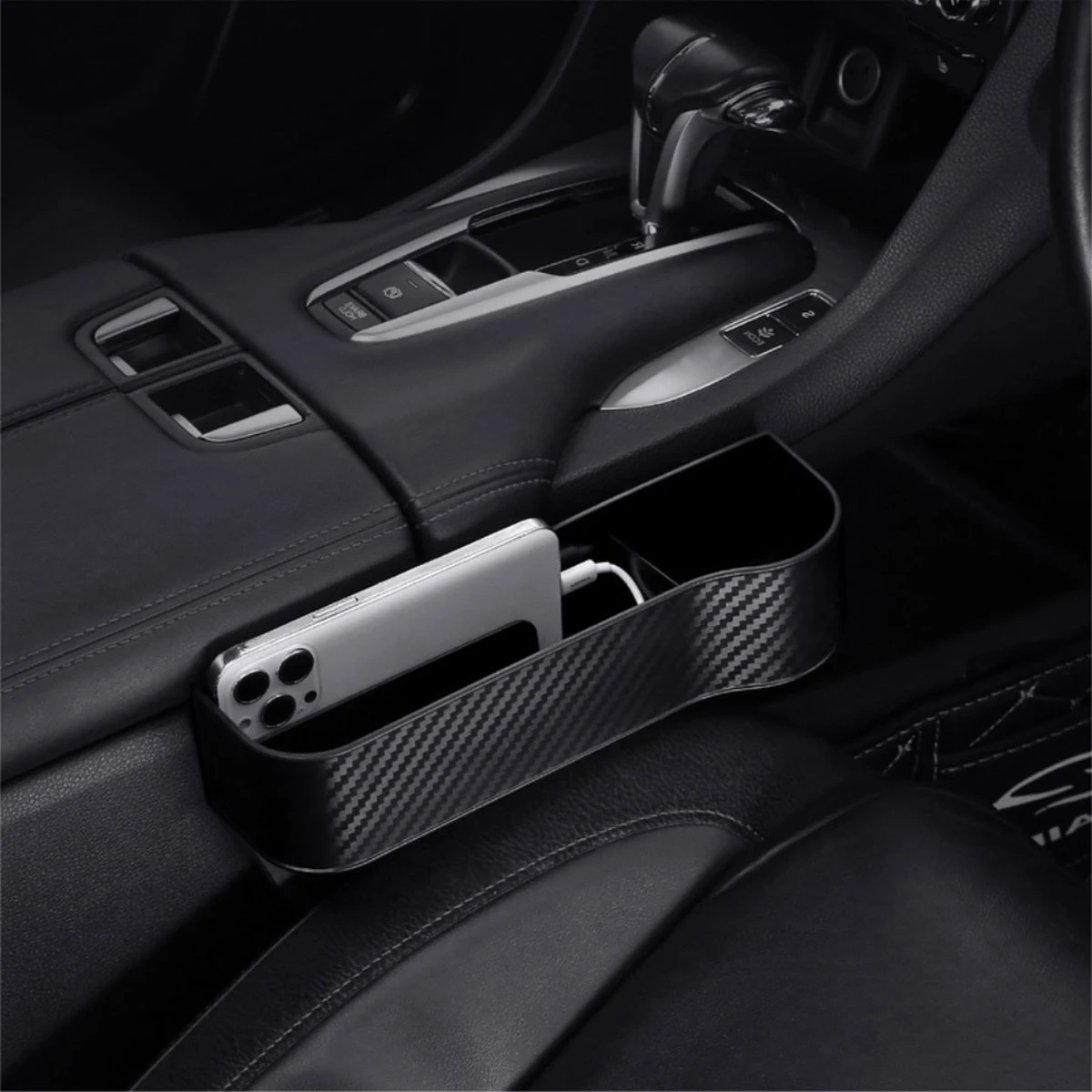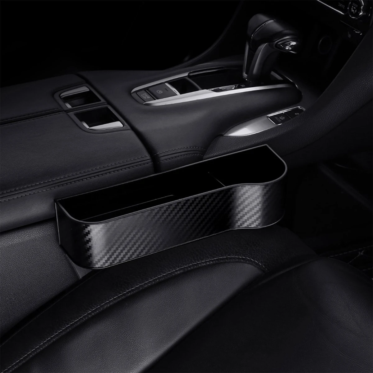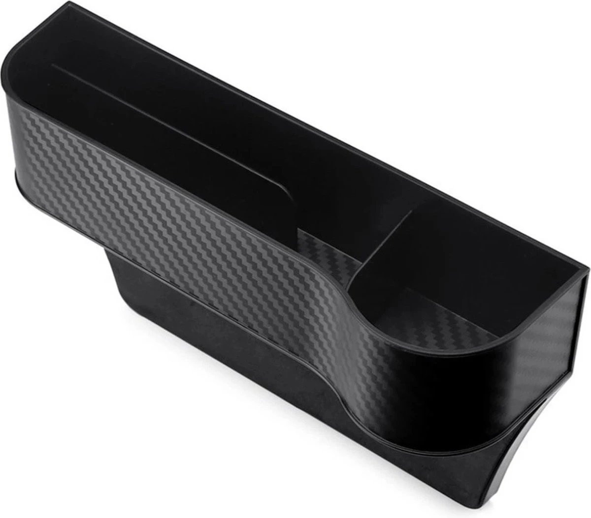 Autostoel Organizer Bijrijder Met Bekerhouder | Auto Opbergdoos Met Bekerhouder | Auto Organizer | Gap Filler Autostoel | Auto Gap Vuller | Organizer In Carbon Fiber Look | Auto Accessoires | Opbergen Auto Accessoires |