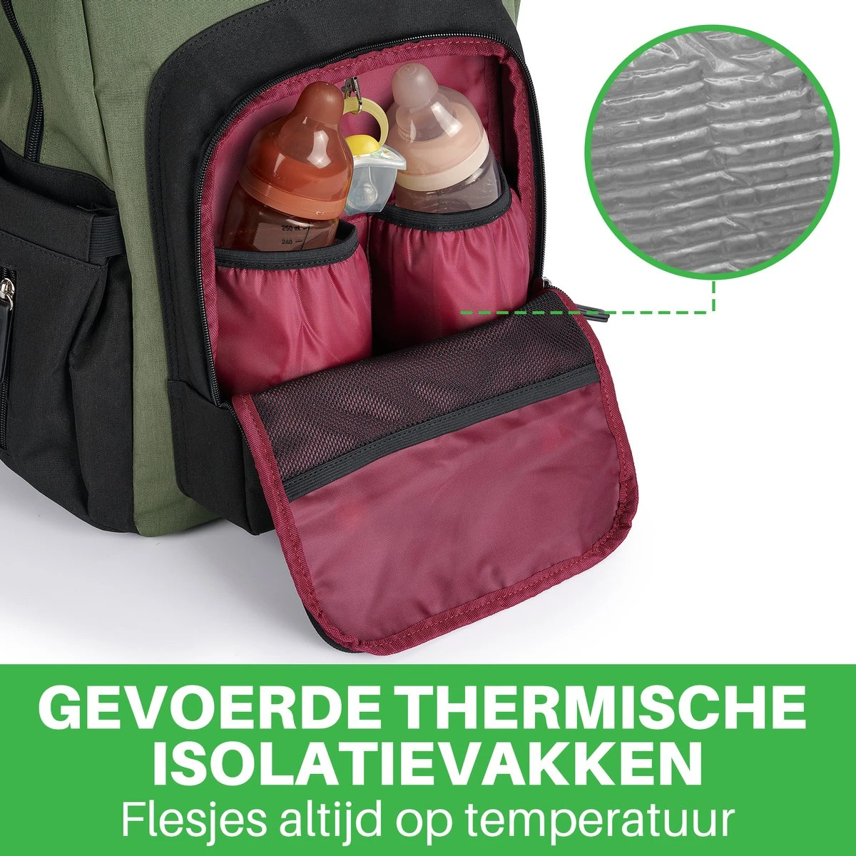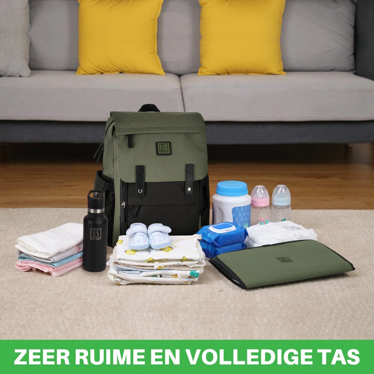 Brisby slijtvaste luiertas – Uniseks – Diverse luiervakken – Two tone – Waterafstotend – Zwart Groen