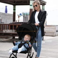 Ding Vivo Wandelwagen – Zwart/Rose – Inklapbare Buggy – Inclusief Boodschappenmandje En Zonnekap
