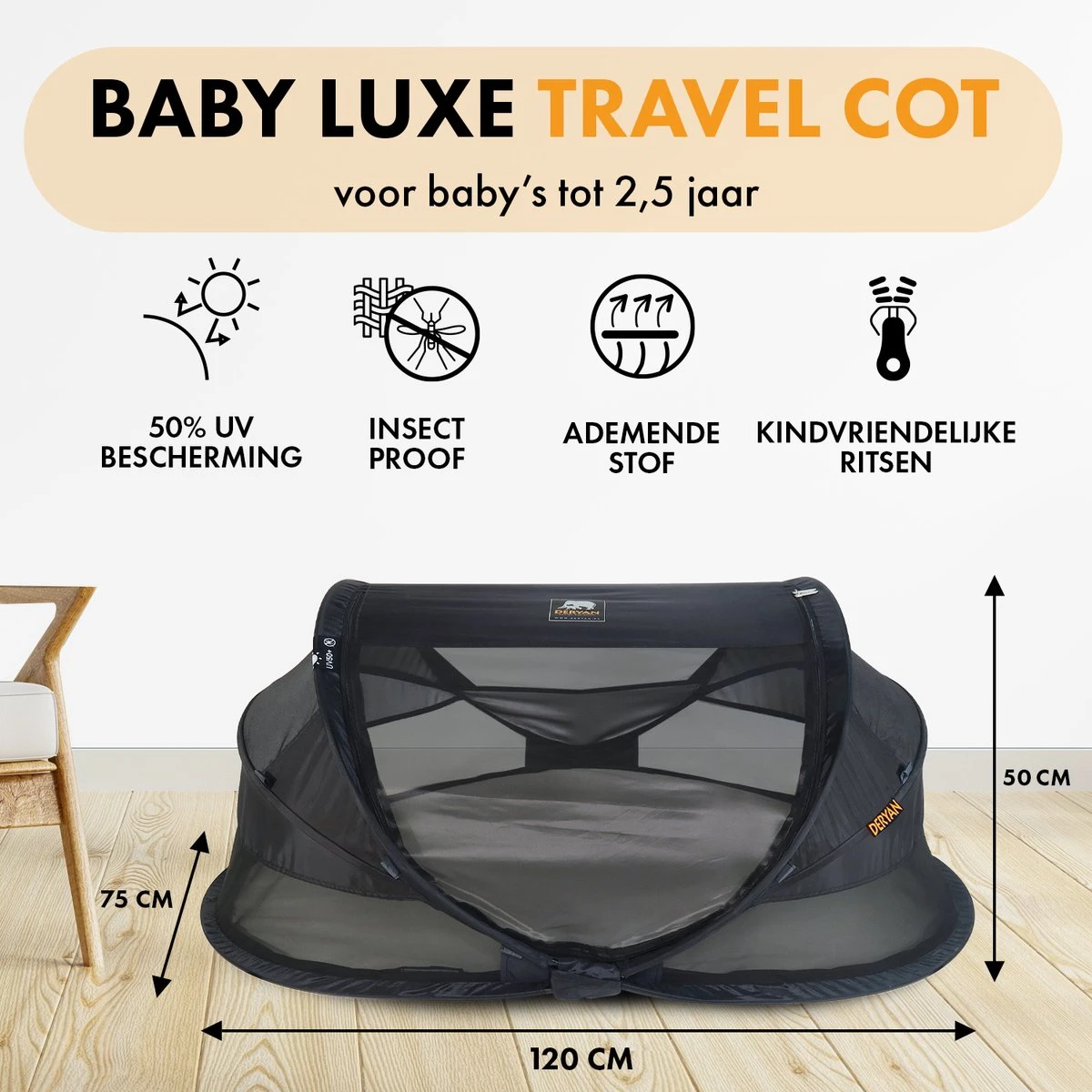 De DERYAN Baby Luxe is dé ideale oplossing én vervanging van het zware campingbedje. Laat je niets meer in de weg staan met deze compacte, lichtgewicht & pop-up reistent. De DERYAN Baby Luxe biedt een ultieme bescherming tegen zon, muggen en andere insecten. Met zijn 1,8 kg neem je ‘m in een handomdraai mee naar ouders, familie, vrienden, vakantie of de wereldreis van je dromen! Ondenkbaar veel mogelijkheden!