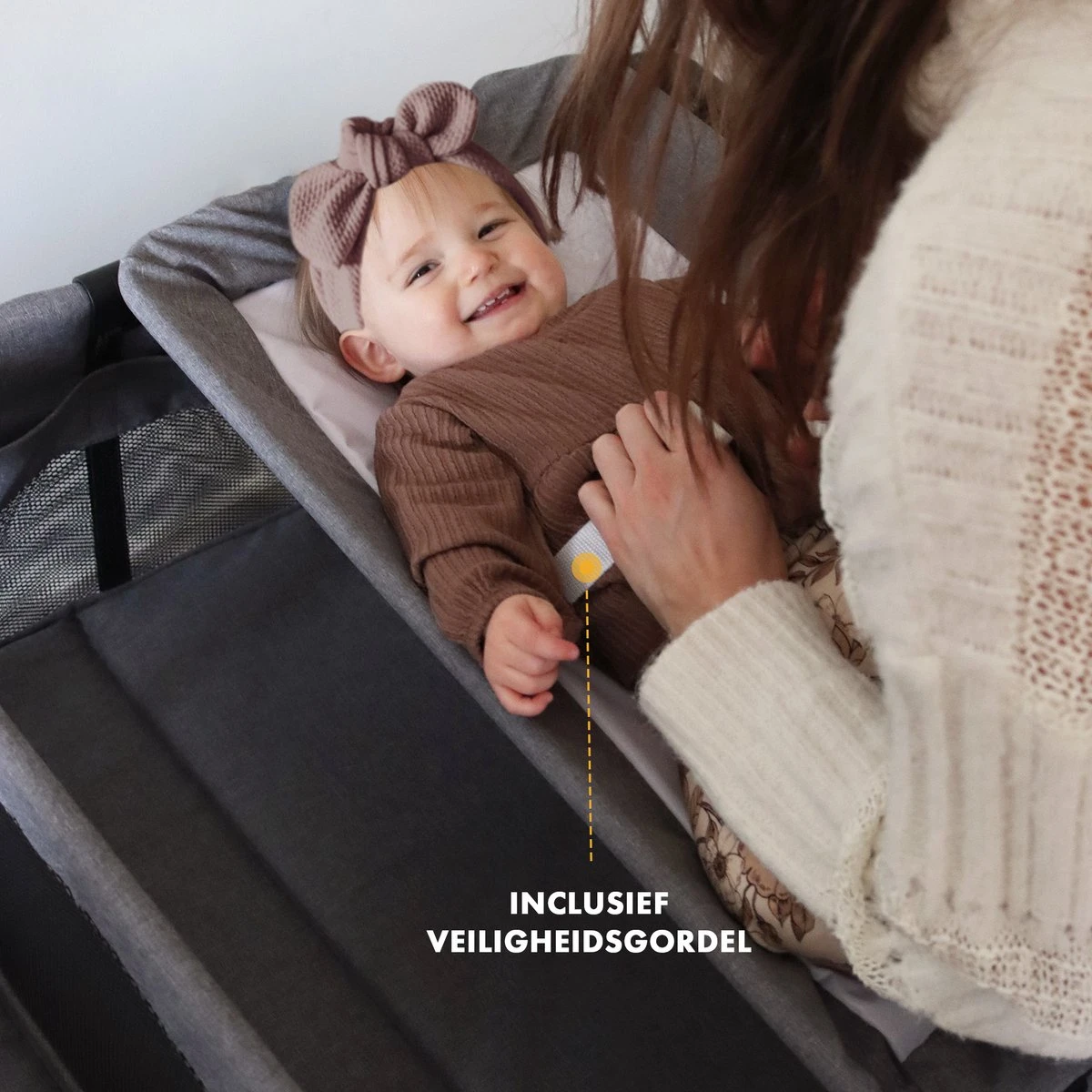Deryan Luxe Campingbed Compleet – 120x60cm – Bodemverhoger – Verschoonblad – Opbergmand – Grijs