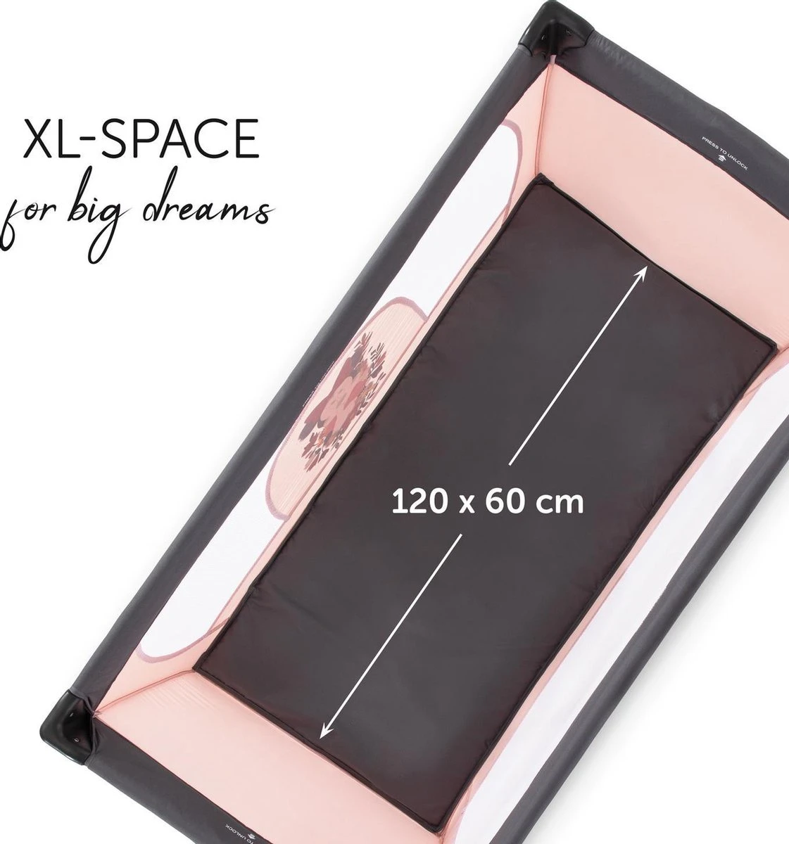 Veilig slapen en spelen. In dit bed slaapt uw ​​kleine schat gezond op elke reis, net als thuis – vanaf de geboorte. De grote kijkvensters van netweefsel garanderen een optimale luchtcirculatie en geven uw kleine nakomelingen de mogelijkheid u op elk gewenst moment te zien. Bovendien maakt het grote oppervlak van 120 x 60 cm van Dream N Play ook de perfecte box. Je zonnestraal voelt zich hier op je gemak, terwijl je voor het huishouden zorgt of terwijl je rust.
