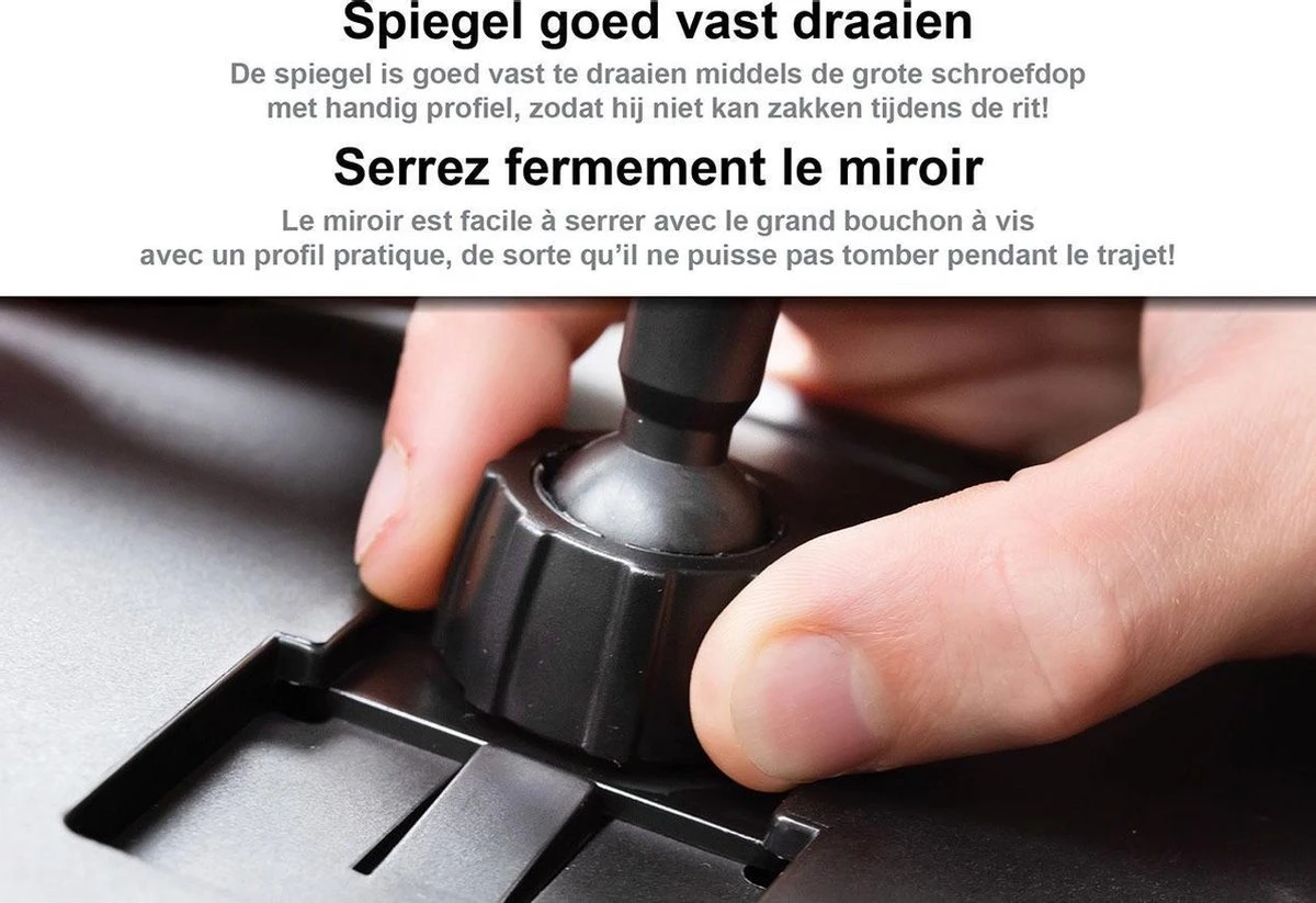 ✔ Stevig: blijft goed zitten tijdens een autorit en trilt niet. Met schroefknop draai je de spiegel eenvoudig strakker!