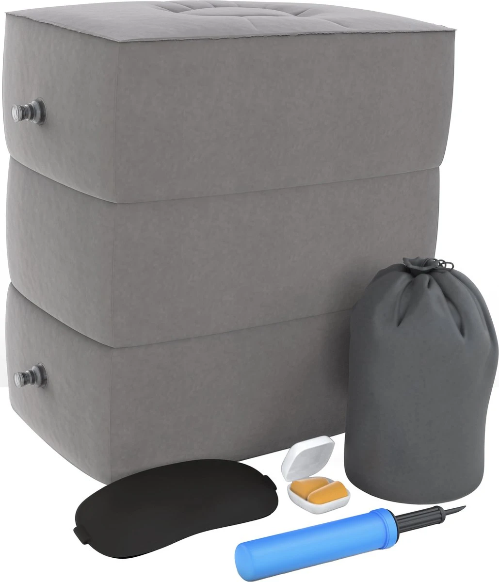✓ Te gebruiken als vliegtuigbedje, voetensteun of reiskussen
