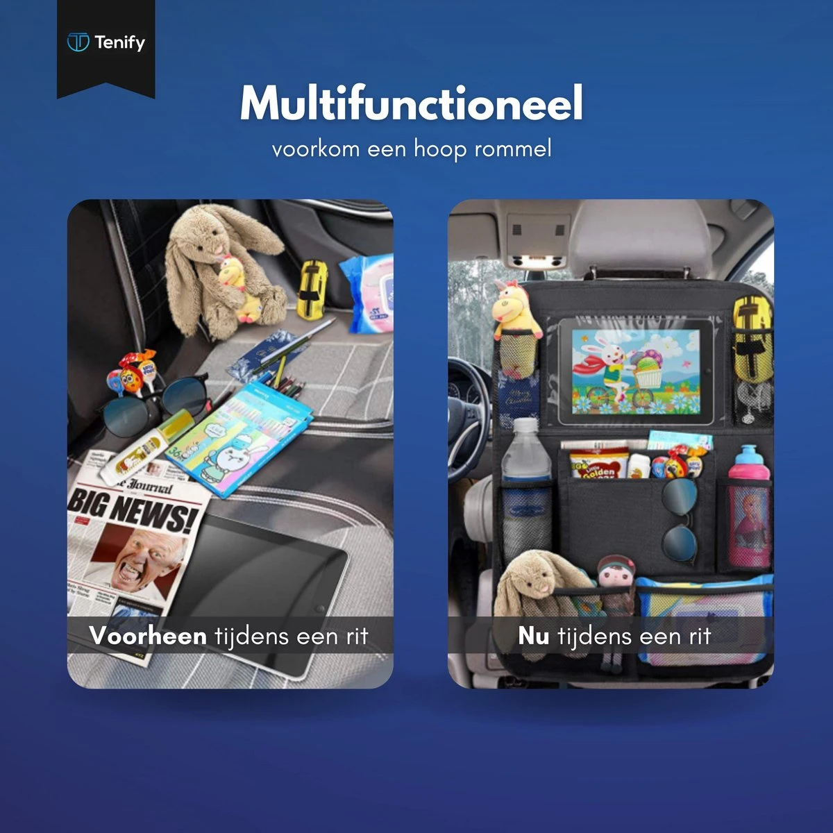 De organizer voorkomt een hoop rommel in de auto. Maar het bevat nog meer. Met deze Tenify organizer bescherm je de achterkant van de stoel en kunnen de kinderen met hun tablet/iPad (tot 10 inch) gemakkelijk hun gang gaan met de zekerheid dat de tablet/iPad niet beschadigd.